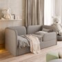 W tej wersji dolna część łóżka skrywa duży pojemnik na pościel, dostępny dzięki metalowemu stelażowi na podnośnikach gazowych, który unosi się lekko i bezpiecznie. To funkcjonalne rozwiązanie dla małych przestrzeni i codziennego porządku.